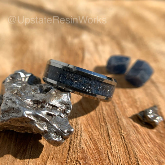 Genuine Sapphire ring, meteorite dust, ceylon blue sapphires, cerulean, gemstone rings, mens ring womans ring, wedding band, engagement ring