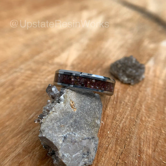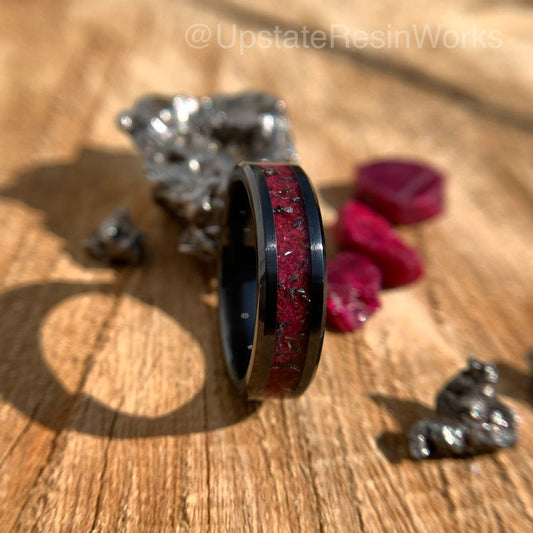 Genuine Ruby ring, Meteorite dust, crystal, Ruby band, wedding ring, promise ring, Anniversary ring, for him, for her, engagement ring