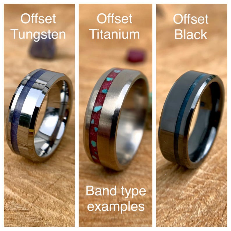 Custom requests; Many different band types, inlay colors, opal and semi-precious gemstone types as well as precisions stones like Ruby, Emerald and Diamond are available. Feel free to send a message with any custom requests, We're happy to help!
